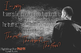 I let out a sigh. I’ll never tell him just how much I’ve missed that endearment of his. It’s been a lonely four years without him and whenever I think about all the shit they put us through my heart squeezes in my chest. My baby boy has gone four years without knowing his daddy because of them and the more I think about the more pissed off it makes me. That’s not how it should have been. But it’s something I must let go of if we’re going to try to make this work between us. If we’re going to try and be a family. And the more I think of it the more I realize this is exactly what I want. I want my little family. I’m running my hands through the bubbles, lost in thought when Phoenix walks back into the bathroom empty handed. I don’t know if I can even describe the look on his face, but his eyes are burning with flames and I feel the heat from them scorch me as his eyes roam my body. I don’t know what happened from the time he was in there to the time he walked in to here but it’s an interesting turn of events. His eyes are telling me that I’m desert and he’s fixing to devour me. Not that you’ll hear me complain at all.
